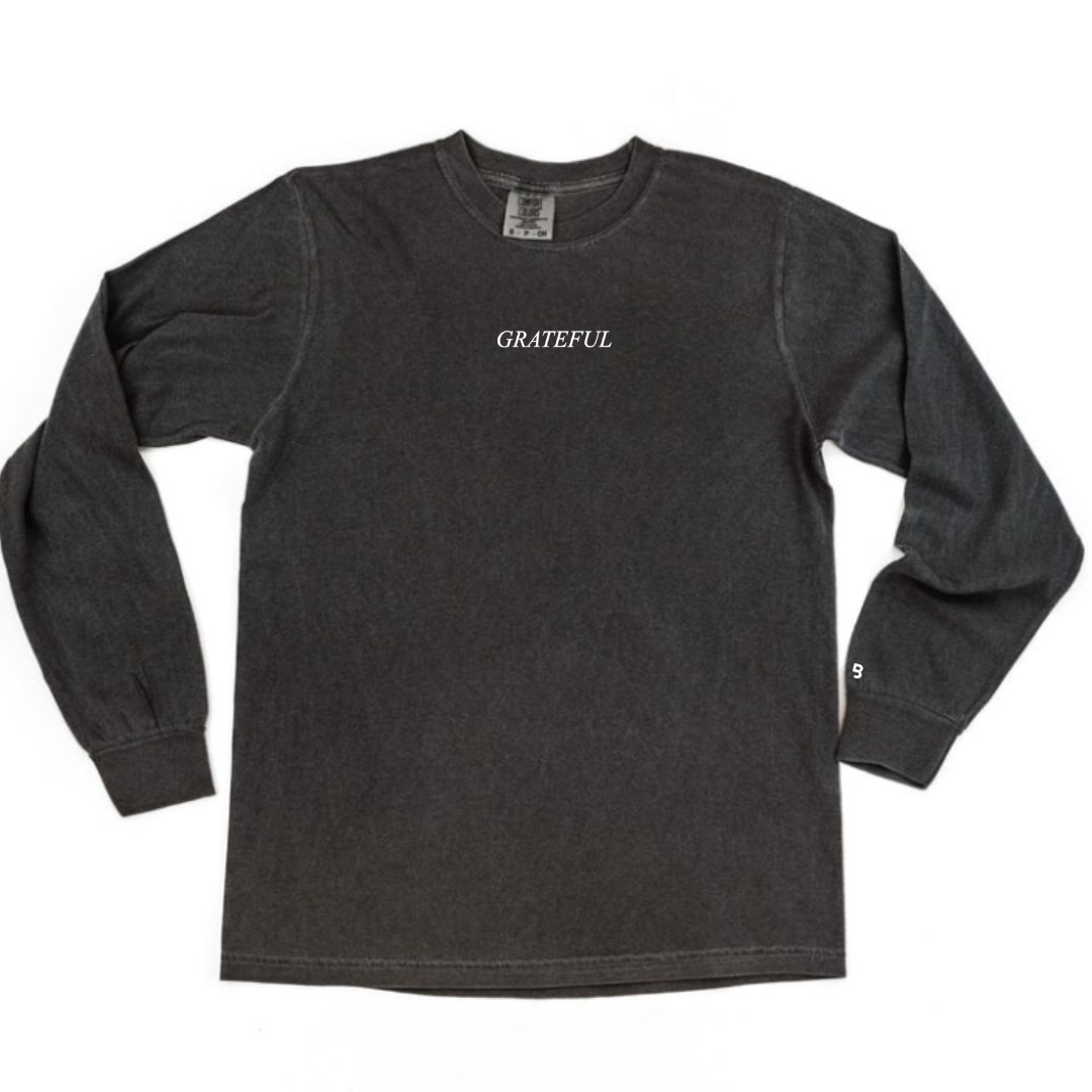 ThisComfort Colors® tee brings together lived-in comfort and a timeless reminder. With its soft, garment-dyed cotton and relaxed fit, this tee feels like an instant favorite. The word “grateful” is placed subtly near the collar in a minimal design – simple, meaningful, and effortlessly stylish.