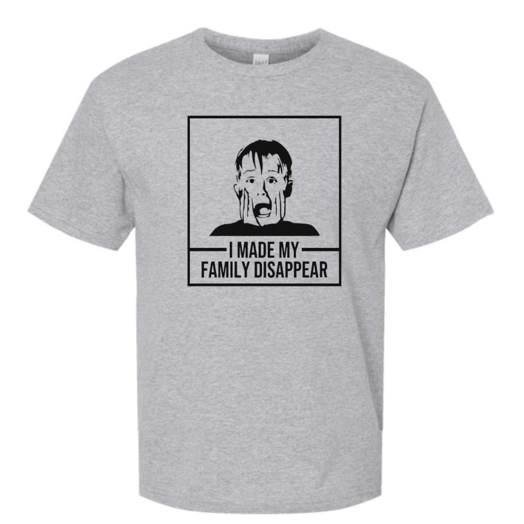 Our I Made My Family Disappear Premium Tee is soft, breathable, and made for sneaky moments of holiday bliss. Perfect for lounging on the couch, sipping cocoa, and laughing at all the holiday chaos while secretly enjoying a little peace and quiet.