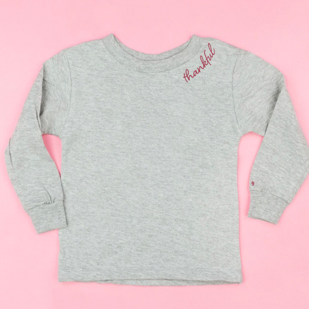 A sweet and simple reminder for your little one to carry gratitude wherever they go. This kids tee is made from soft, premium cotton that keeps up with every adventure – from playdates and school days to cozy family moments at home. With its relaxed, comfy fit and timeless design, it’s made to be loved all year long. It’s the perfect everyday tee to match with mama or to remind them that there’s always something to be thankful for.